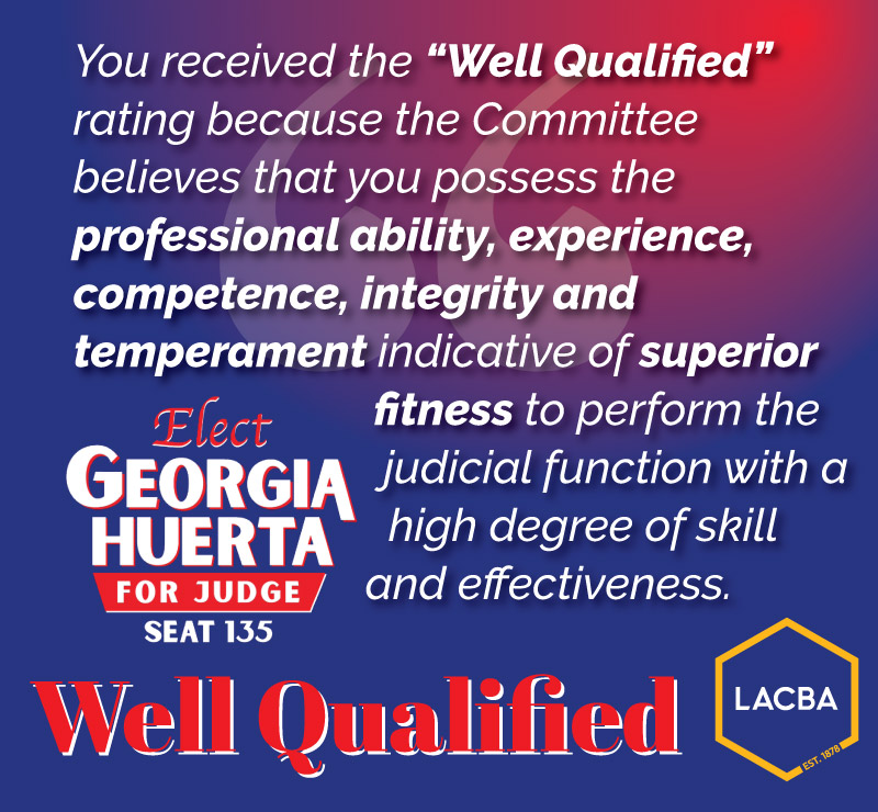 There is no other candidate running for Los Angeles Superior Court Judge Seat 135 with as much experience as Georgia Huerta.