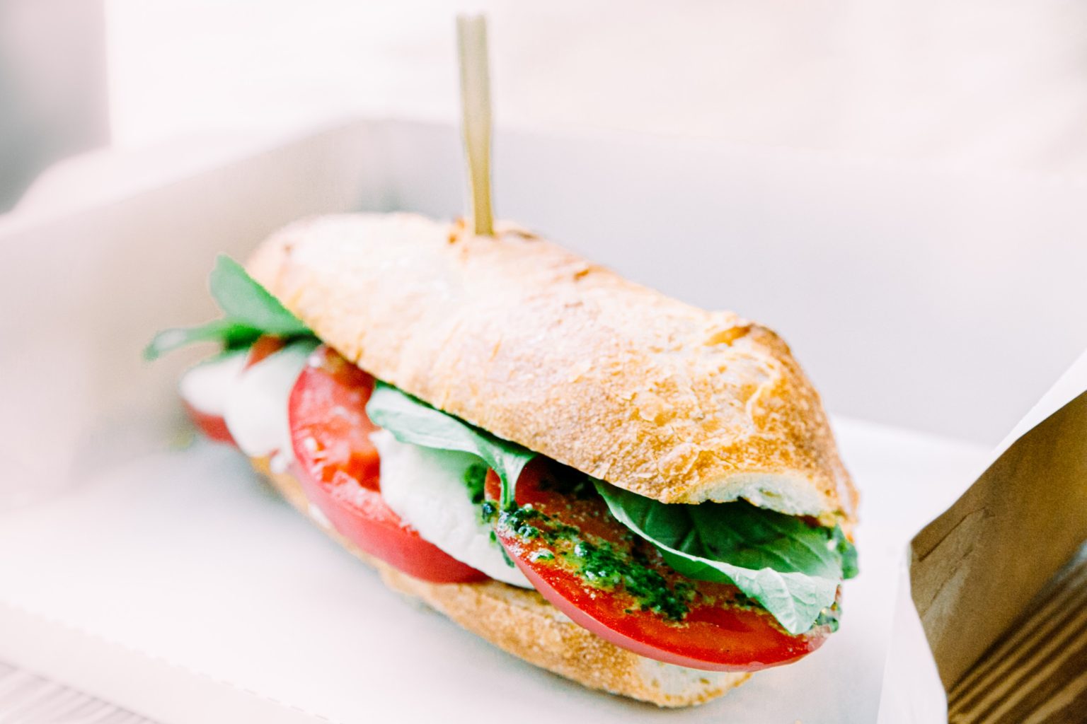 arugula, fresh mozzarella, tomato, roast peppers and lemon herb aioli on Foccacia/ Baguette